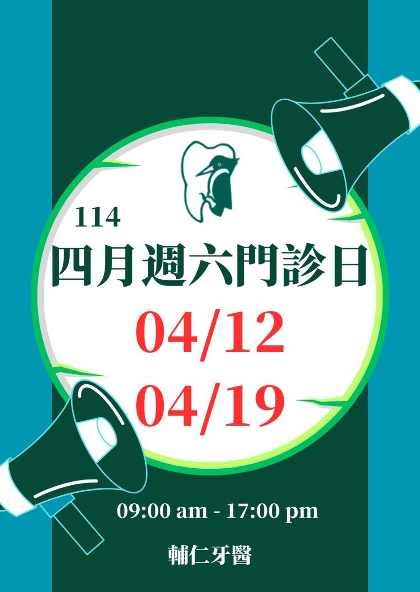 114/04月 週六門診日期公告 04/12 & 04/19