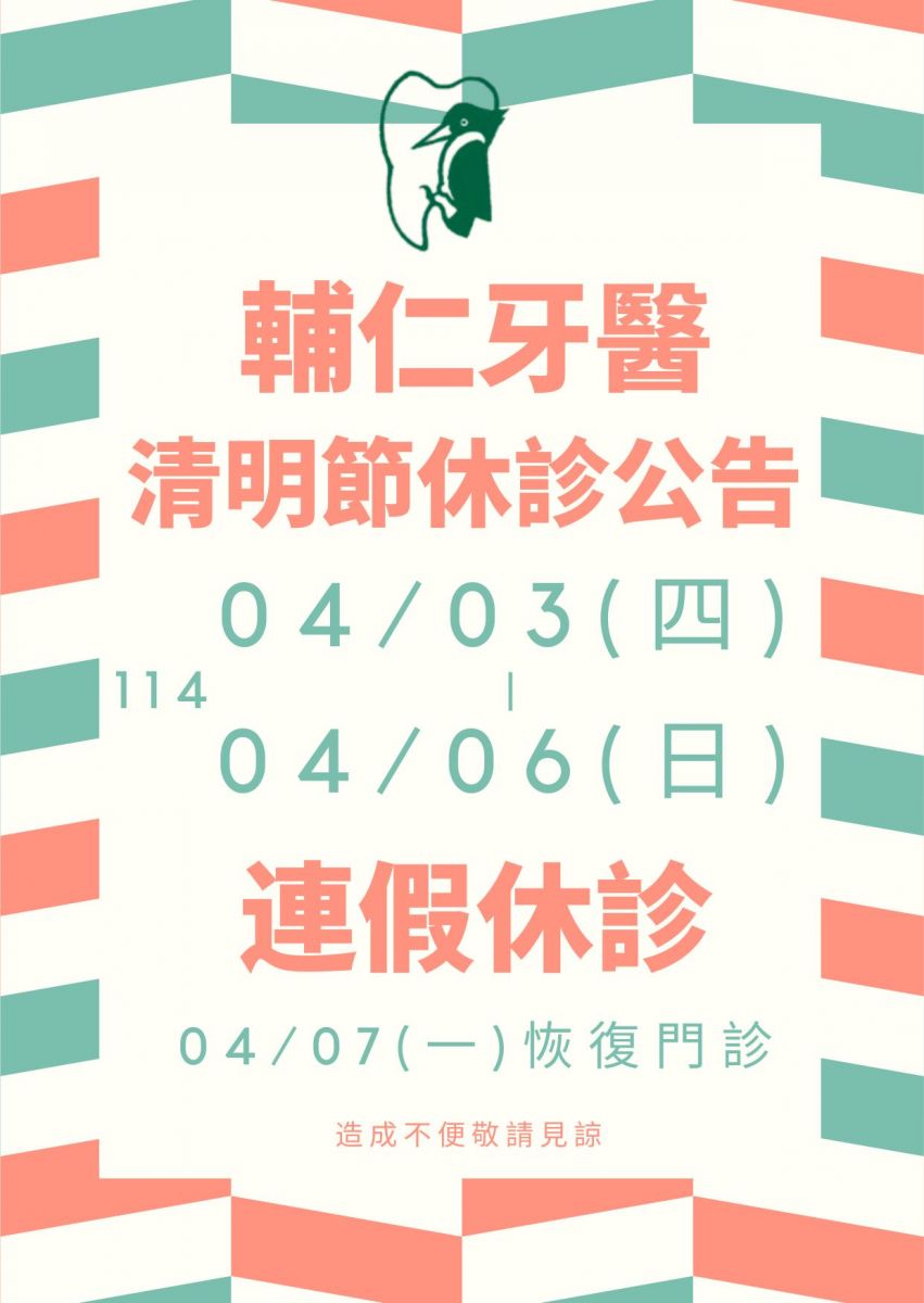 114/04/03(四)-114/04/06(日) 清明連假休診公告