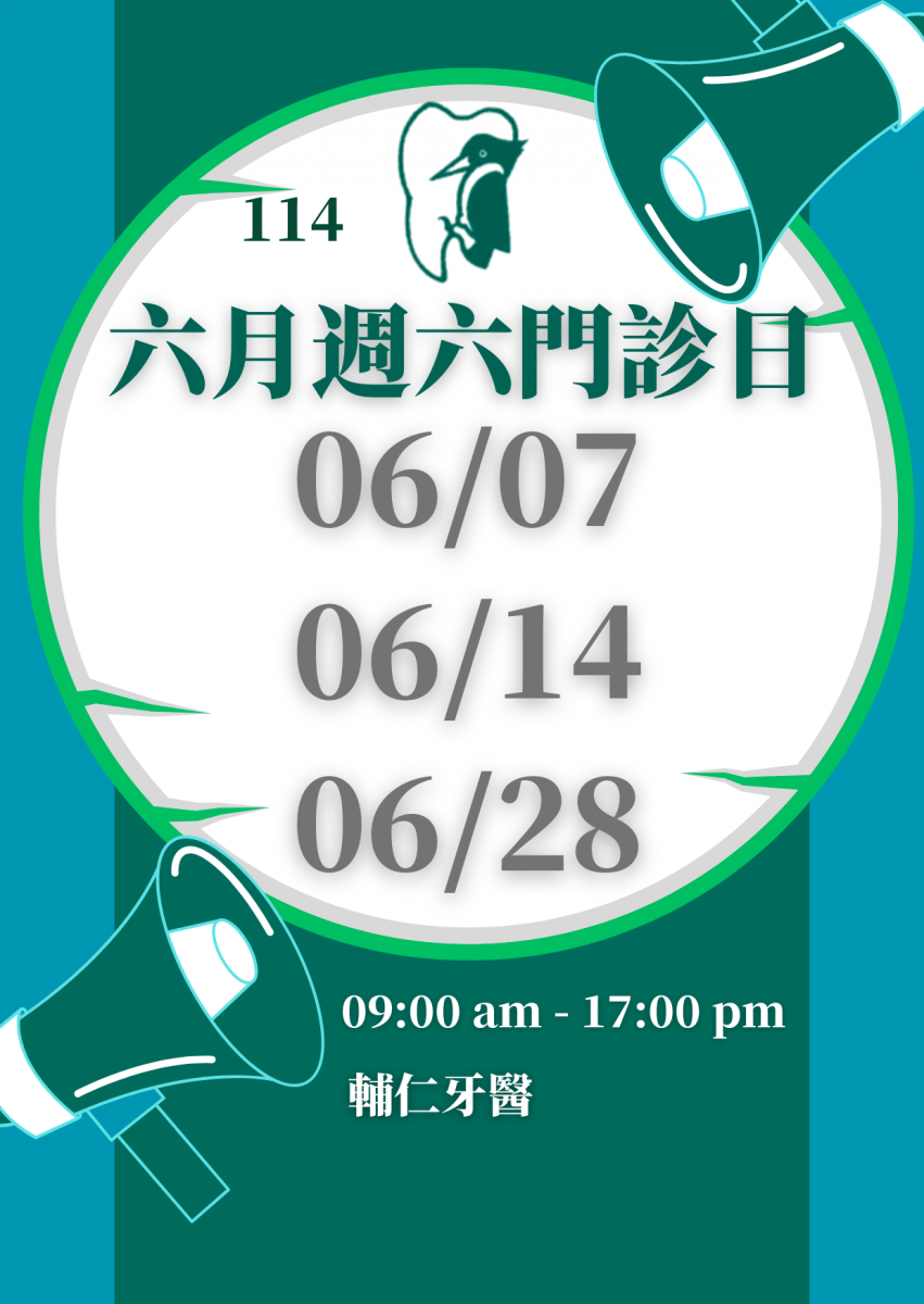 114年6月份週六看診時間 06/07 | 06/14 | 06/28