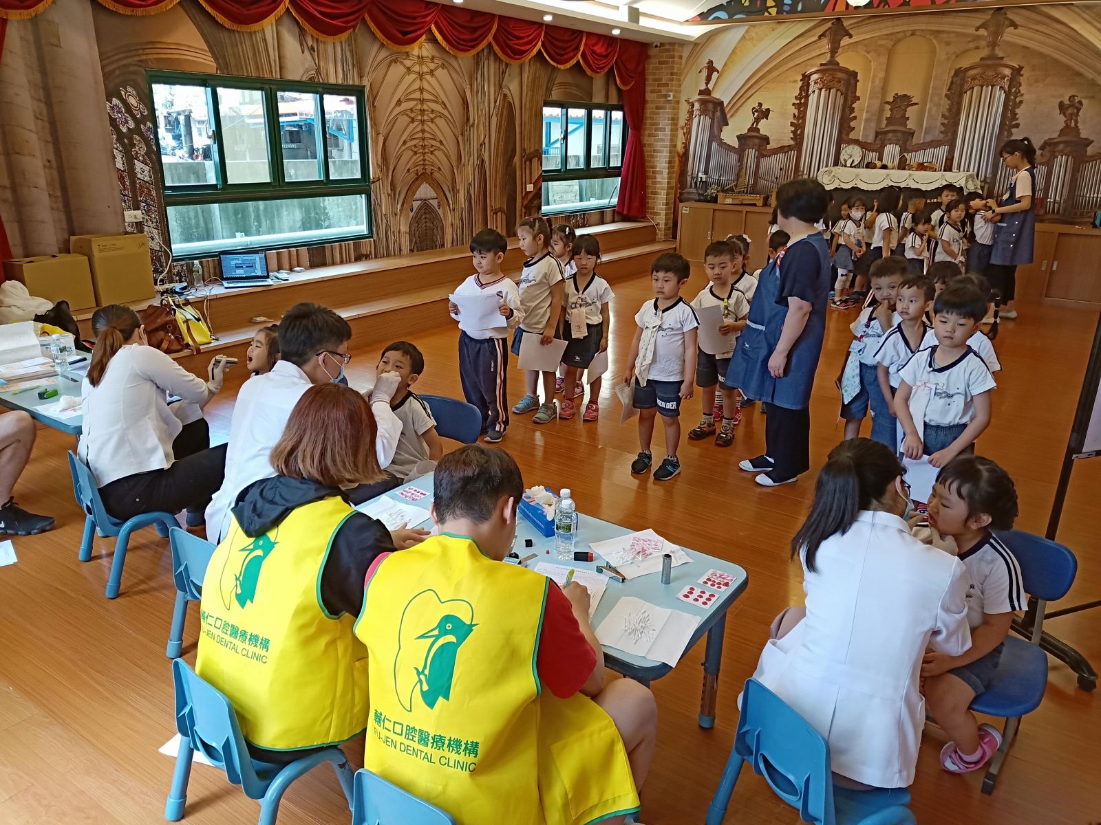 本院透過與幼兒園合作,替孩子們做口腔塗氟健檢,為學齡前幼童的口腔健康把關,希望經由定期檢查達到預防保健的效果,幼兒園的寶貝們都很勇敢哦!