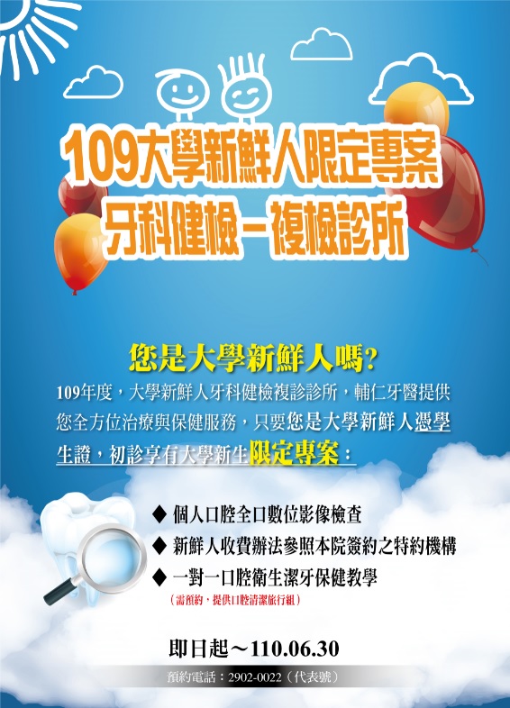 即日起至110年6月30日,憑學生證預約牙科健檢複診,除了為您找出牙齒問題消除病兆外,更提供三大獨享好康: